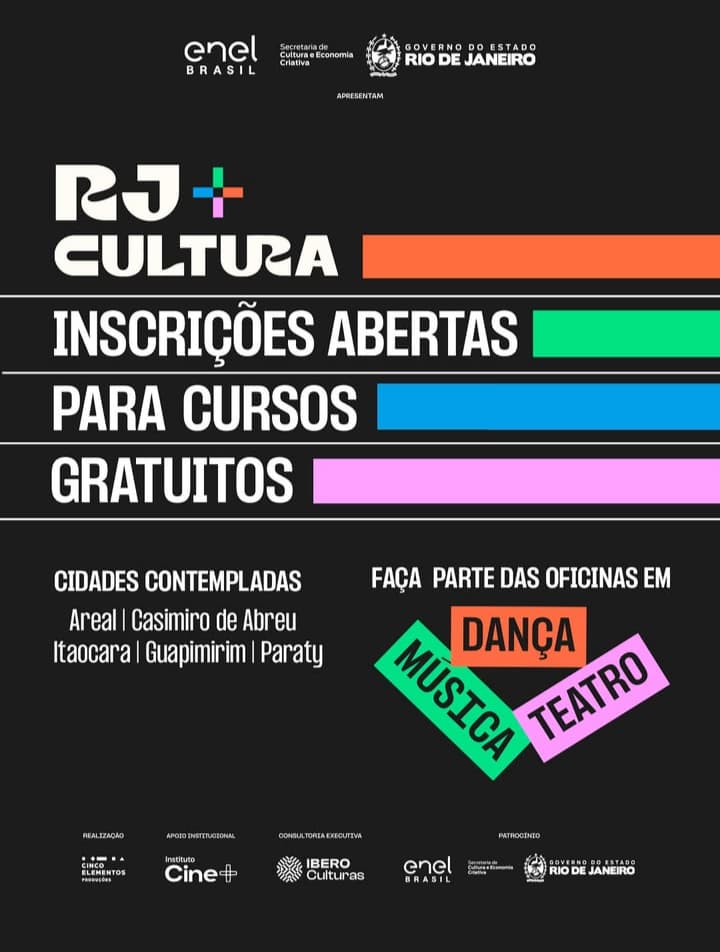 O município de Guapimirim está com inscrições abertas para os cursos gratuitos de Música, Dança e Teatro oferecidos pelo programa RJ+ Cultura, uma iniciativa voltada à formação artística e à valorização das tradições culturais do estado do Rio de Janeiro. As inscrições podem ser feitas até o dia 10 de novembro.